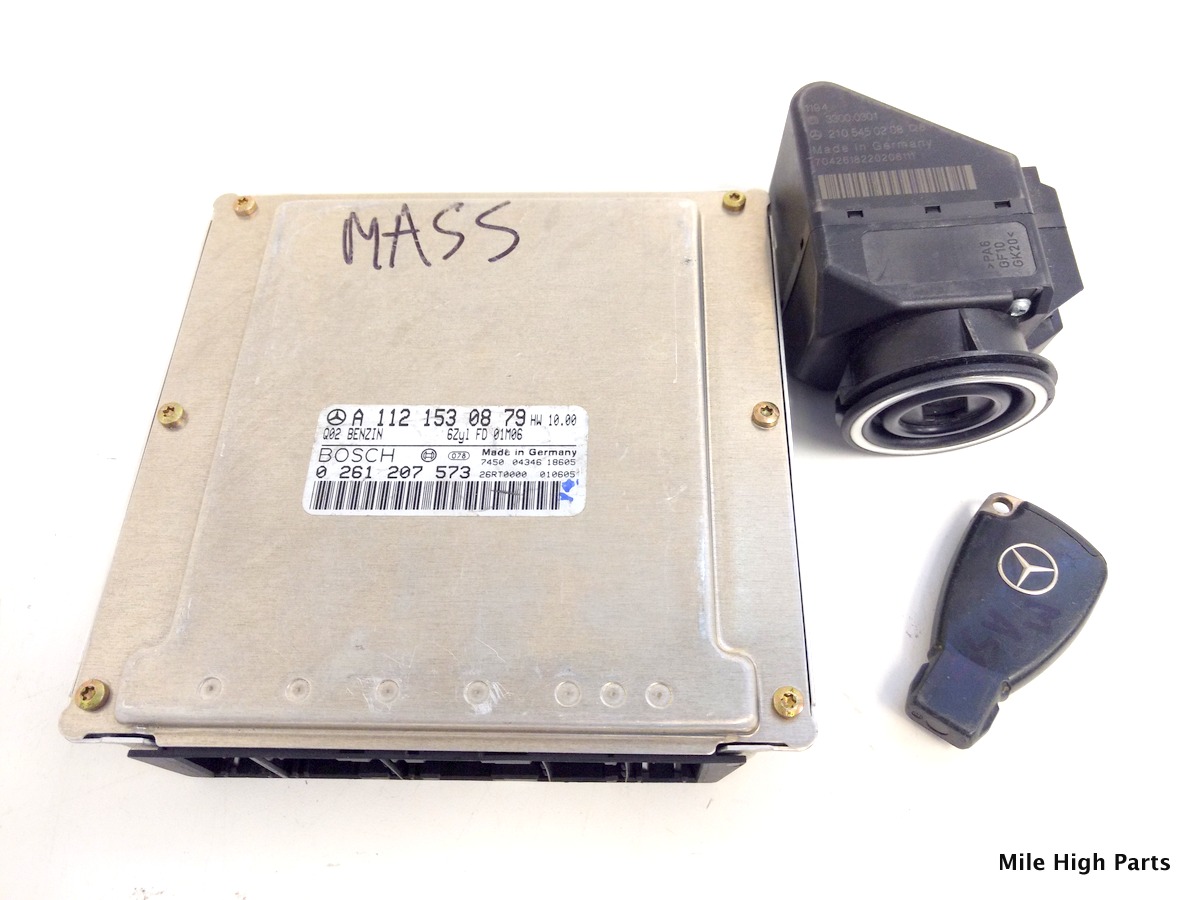 01-05 Mercedes W210 E Class Engine Computer ECU A1121530879 Ignition + Key SET