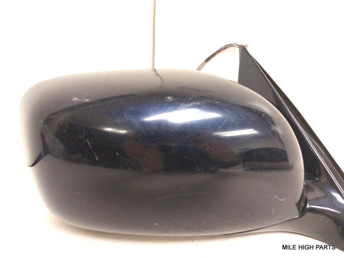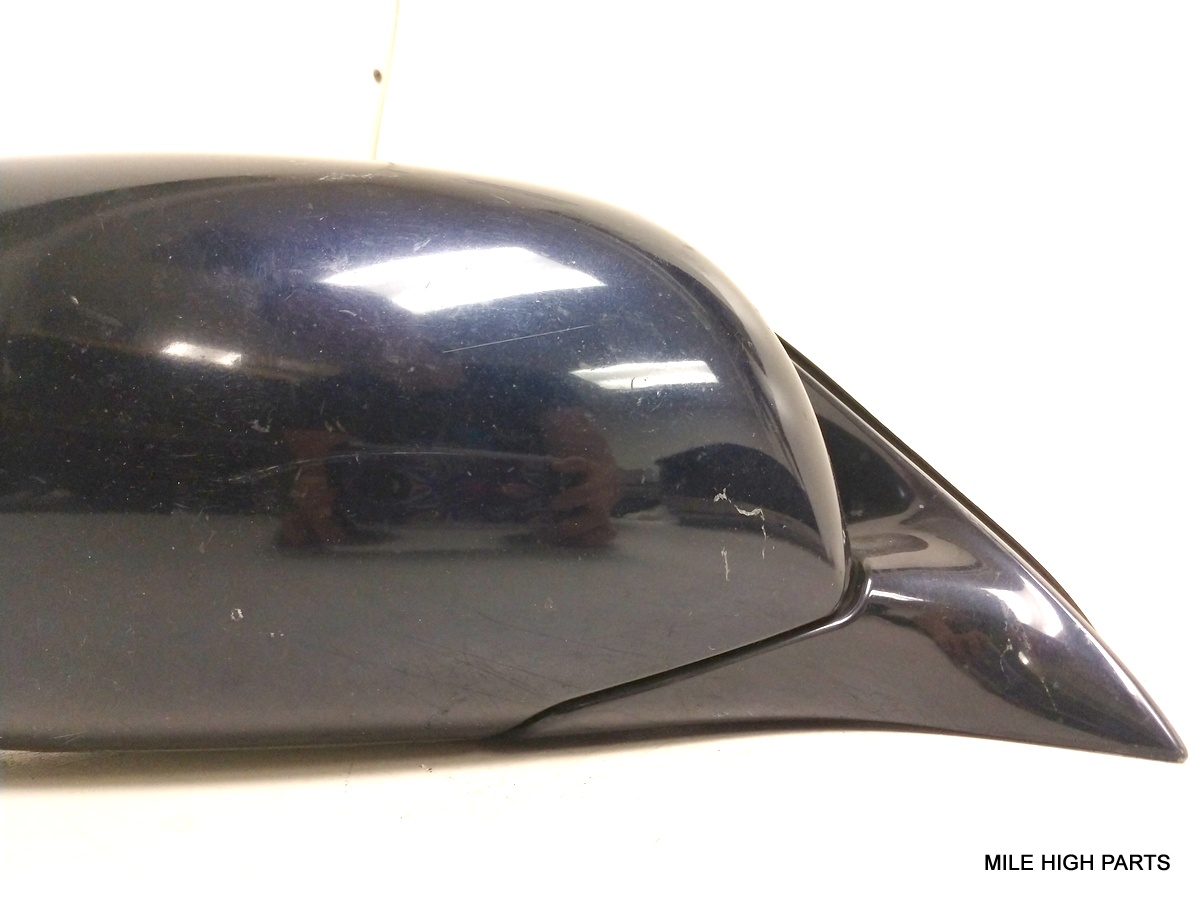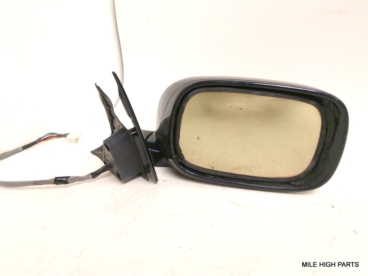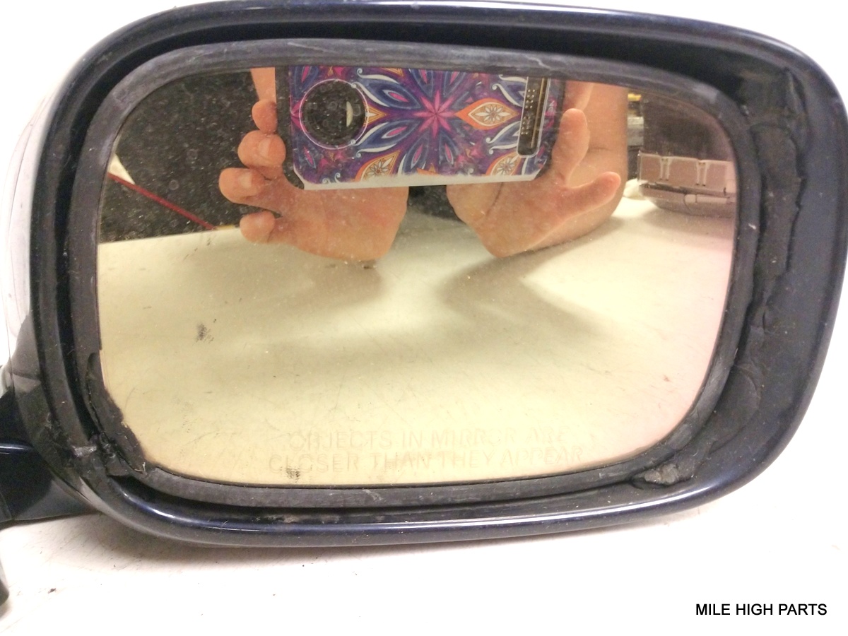 GLASS HAS SLIGHT YELLOW TINT, HAS SOME TYPE OF ADHESIVE BETWEEN MIRROR AND HOUSING. MIRROR HOUSING HAS VISIBLE SIGNS OF WEAR DUE TO EXPOSURE TO THE ELEMENTS.