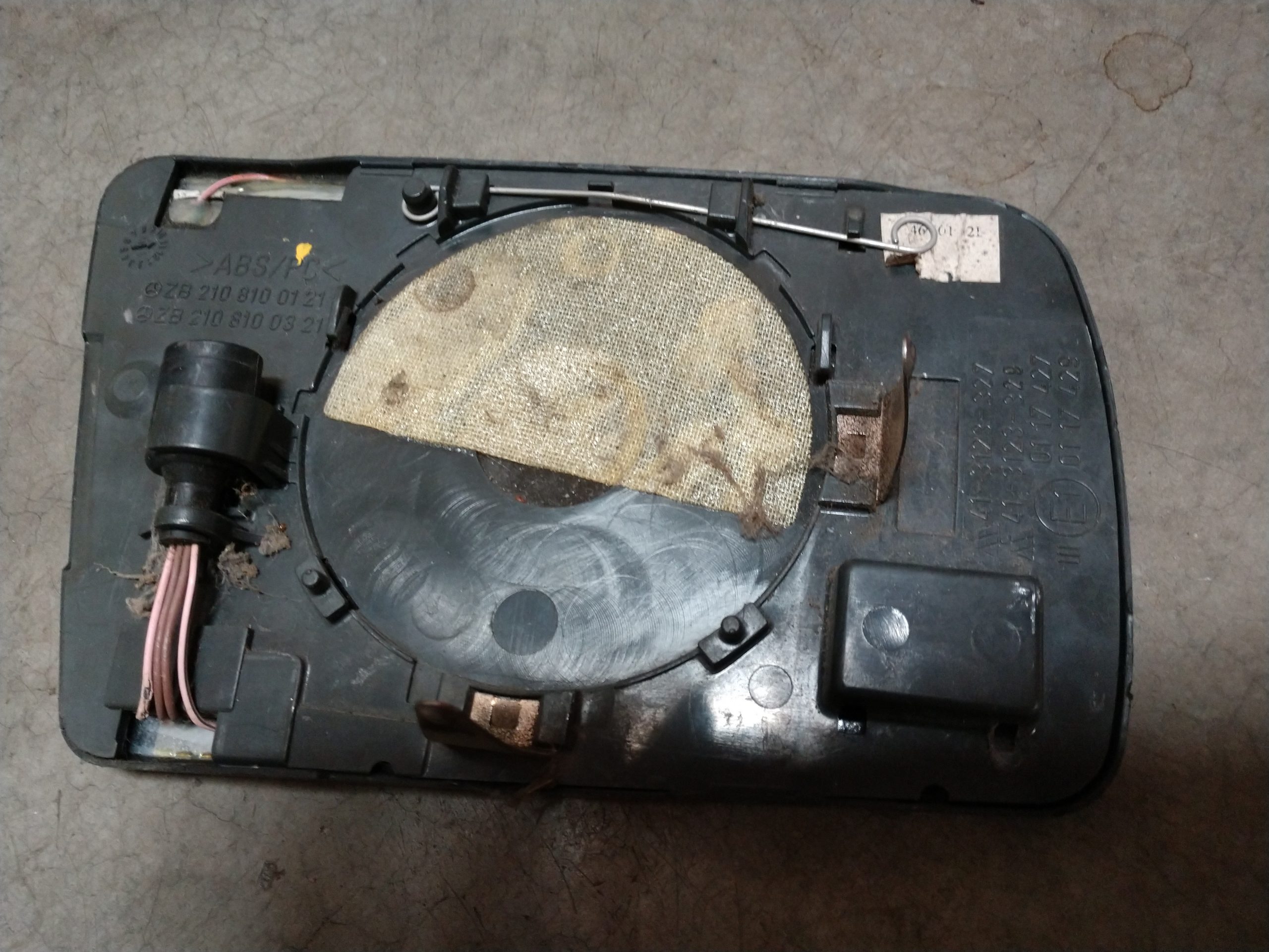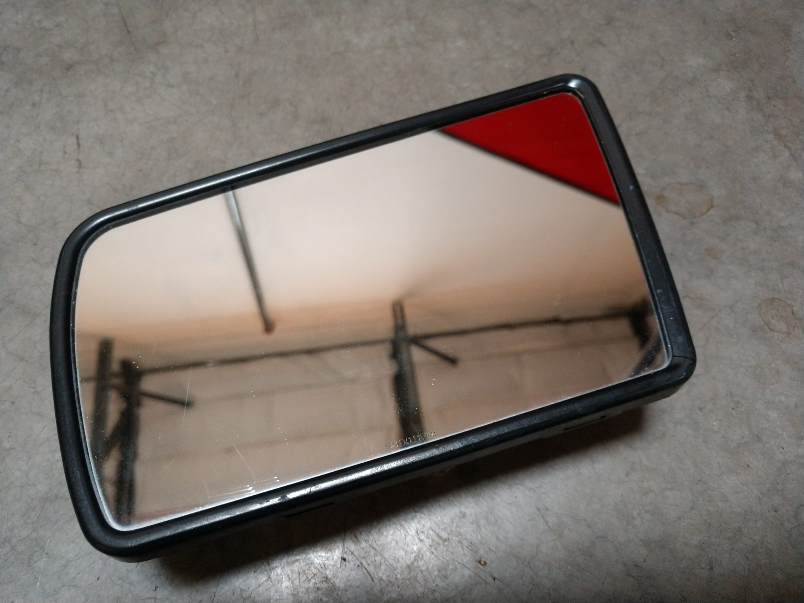 has crack in corner of black trim/bezel. mirror glass light marks/ imperfections in mirror glass. price reduced final sale