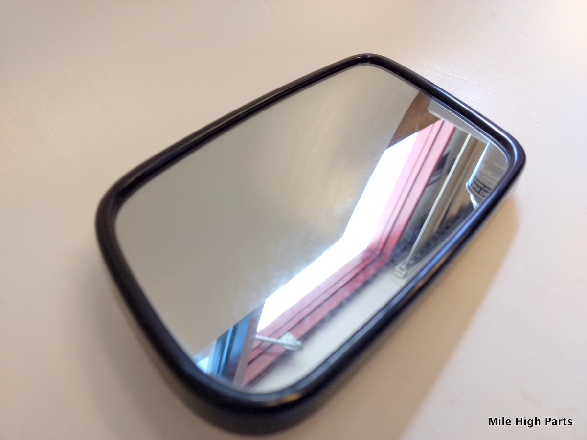 B- Grade Mirror -small scratch in center right of mirror glass. Aftermarket replacement glass made in USA, manufactured in 2008.